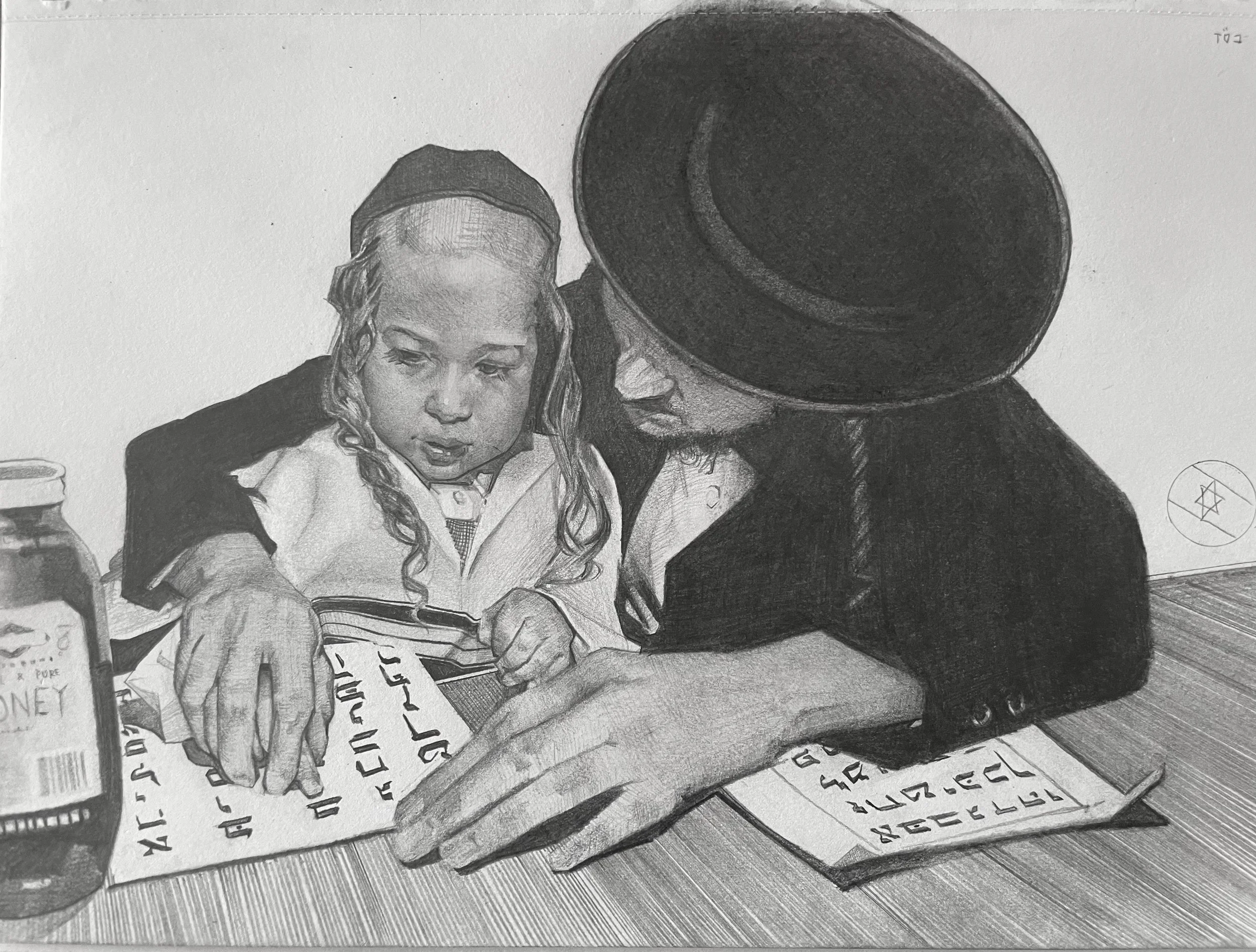 The father then sits his son on his lap and starts to teach him the aleph beit. The letters are coated in honey to teach the birthday boy about the sweetness of the Torah and the Jewish alphabet which the Torah is written in.